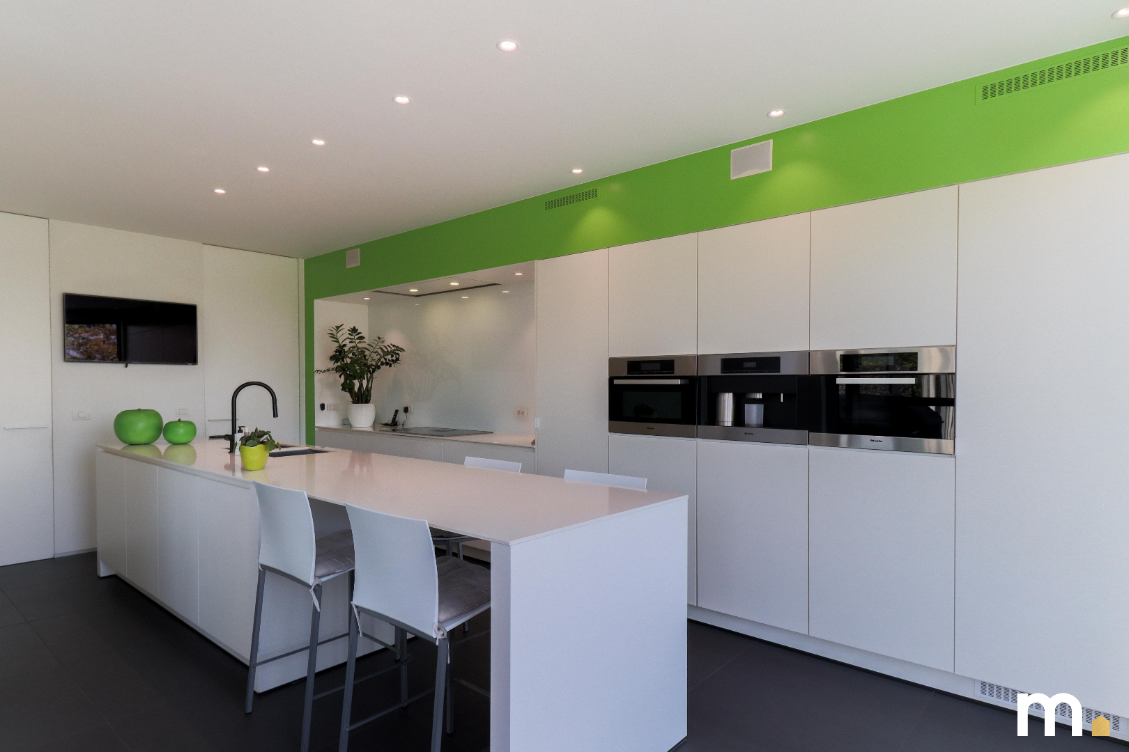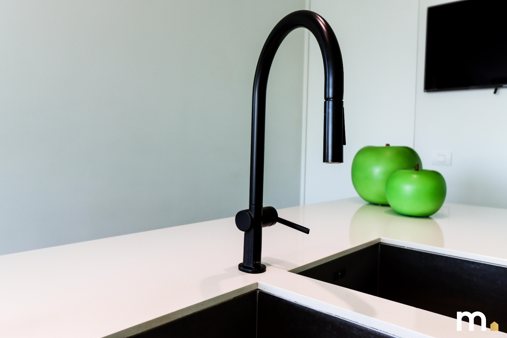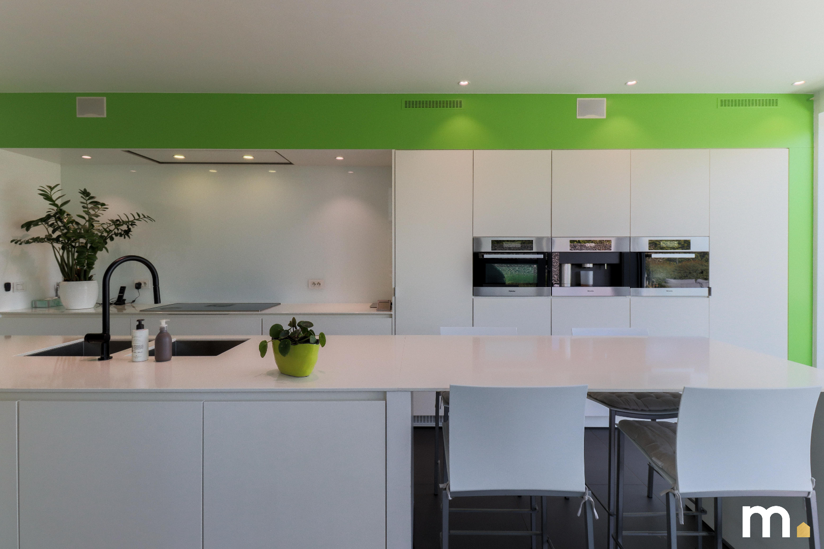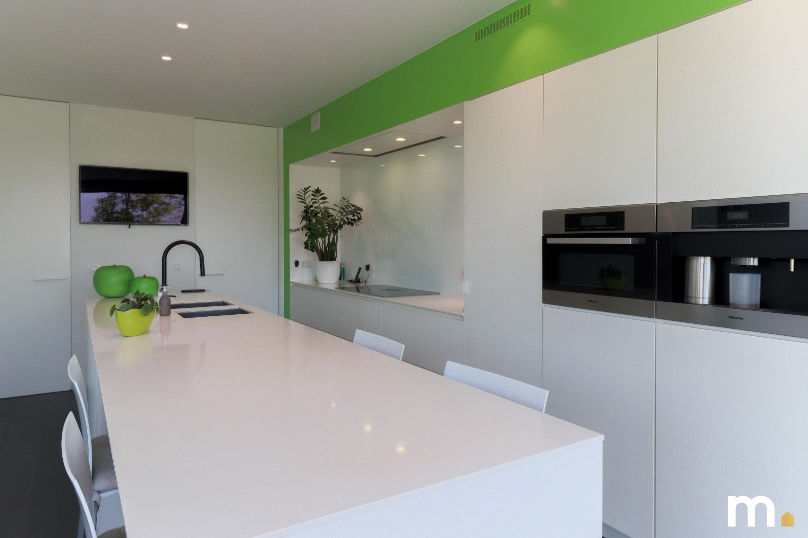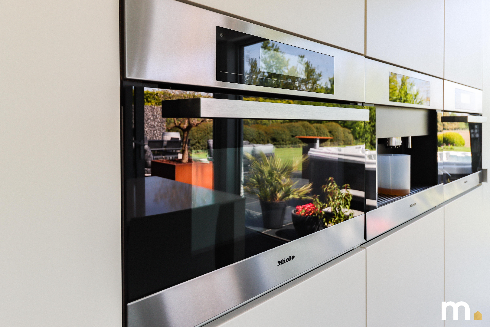De zeer modern ingerichte keuken is van het huis 'Rigole' en voorzien van alle comfort : ruime koelkast en diepvries, inductie, oven/stoomoven - koffiezet en oven/microgolf en dit netjes ingebouwd.