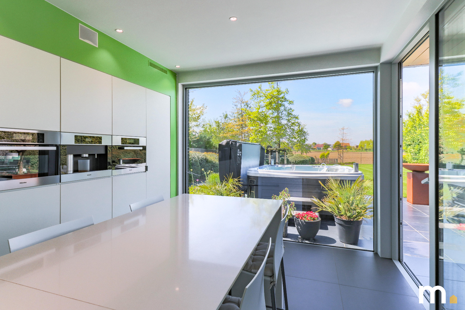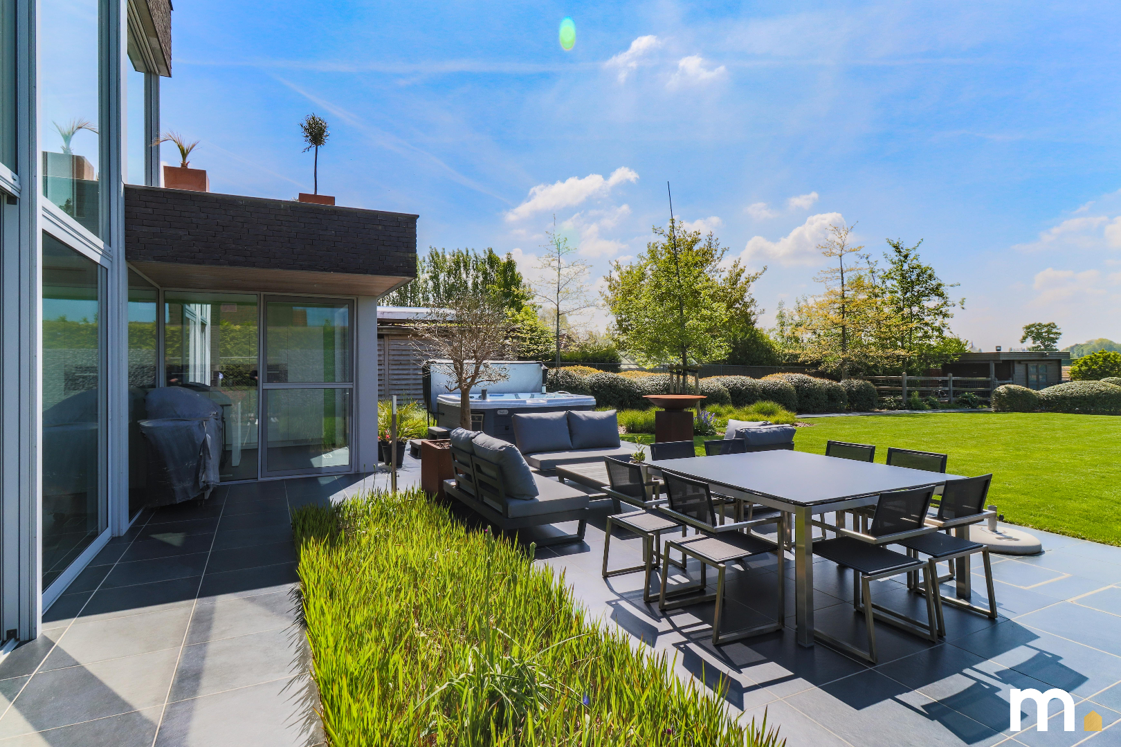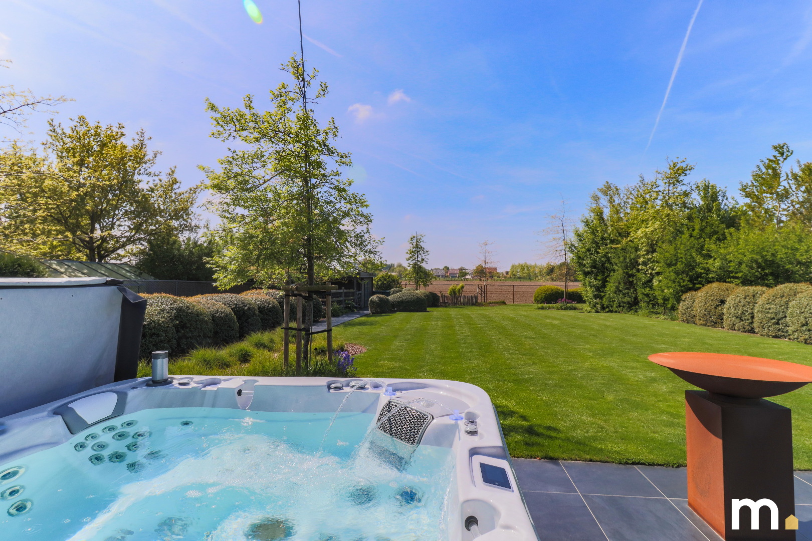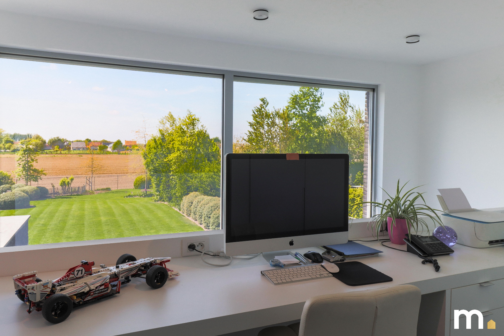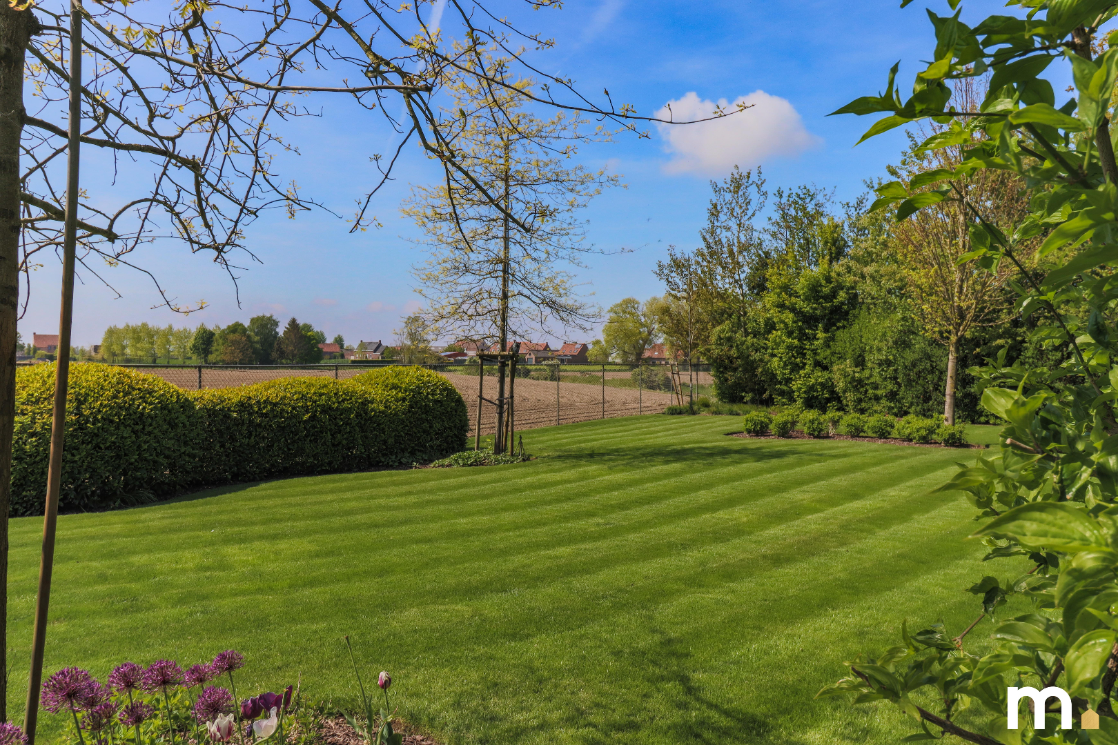 De woning is zeer lichtrijk en kijkt uit op een prachtig aangelegde tuin met eindeloos gegarandeerd vergezicht. Het gazon ligt er hier 'spic en span' bij, mede door een goed uitgekiend sproeisysteem.
