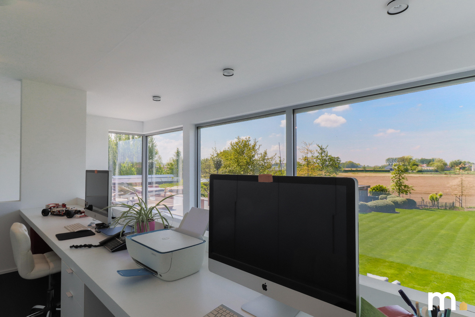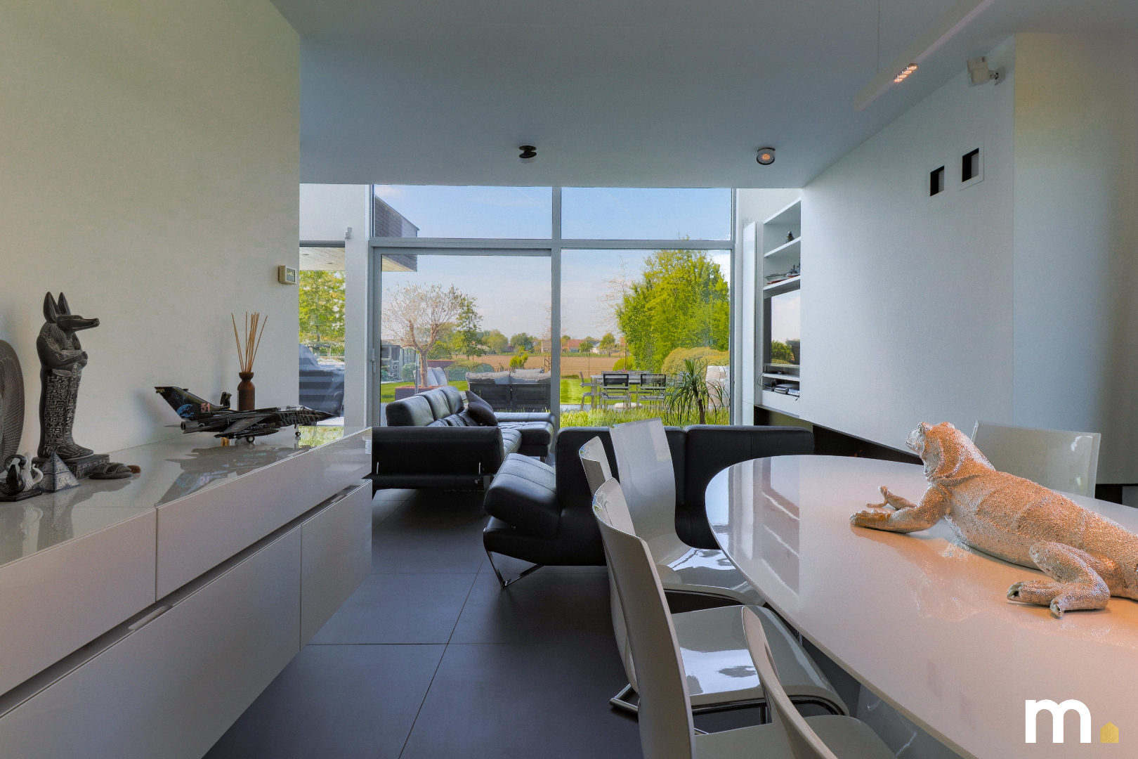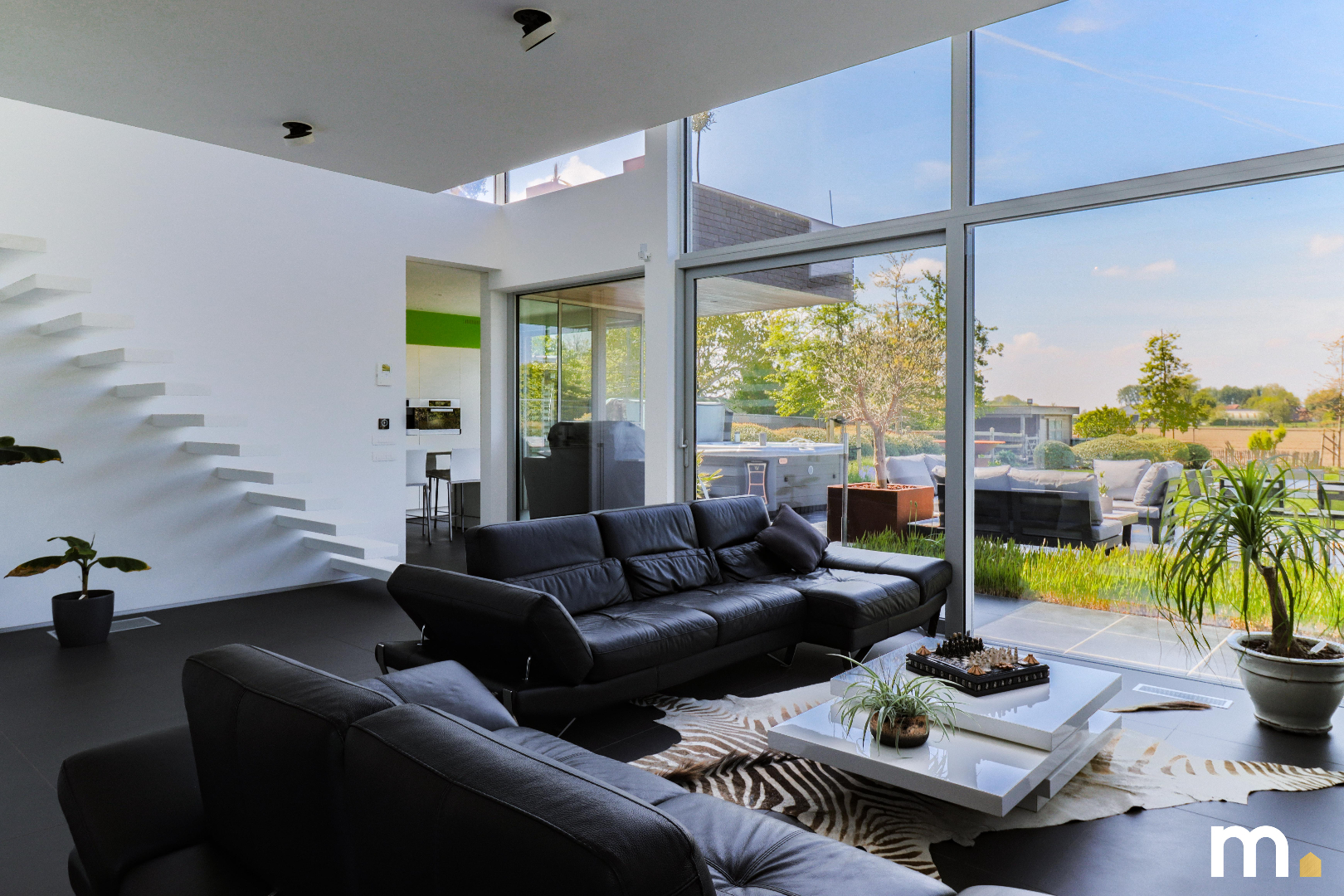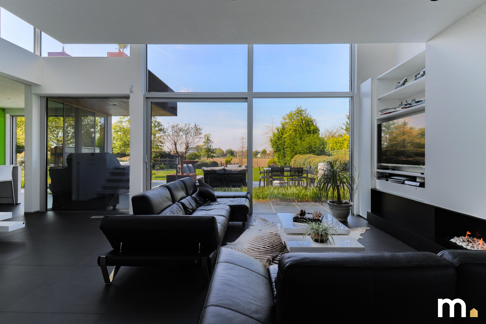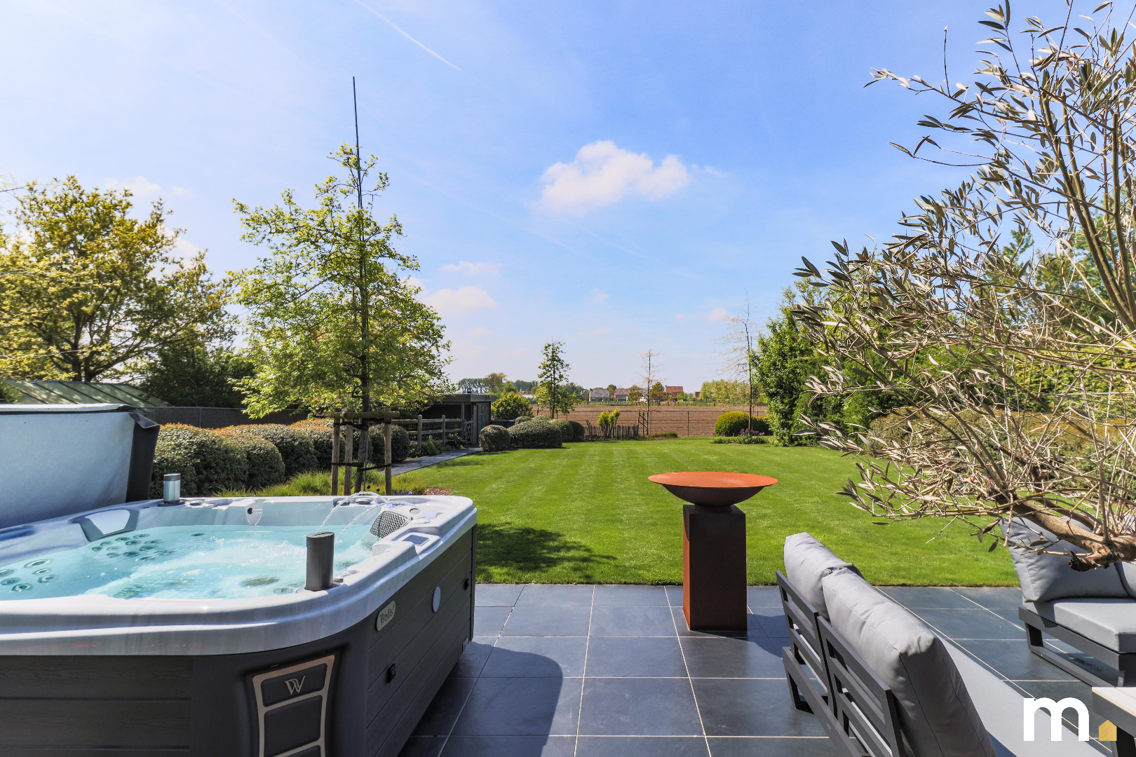 De woning is zeer lichtrijk en kijkt uit op een prachtig aangelegde tuin met eindeloos gegarandeerd vergezicht. Het gazon ligt er hier 'spic en span' bij, mede door een goed uitgekiend sproeisysteem.