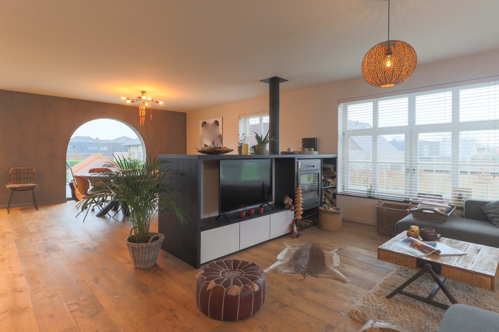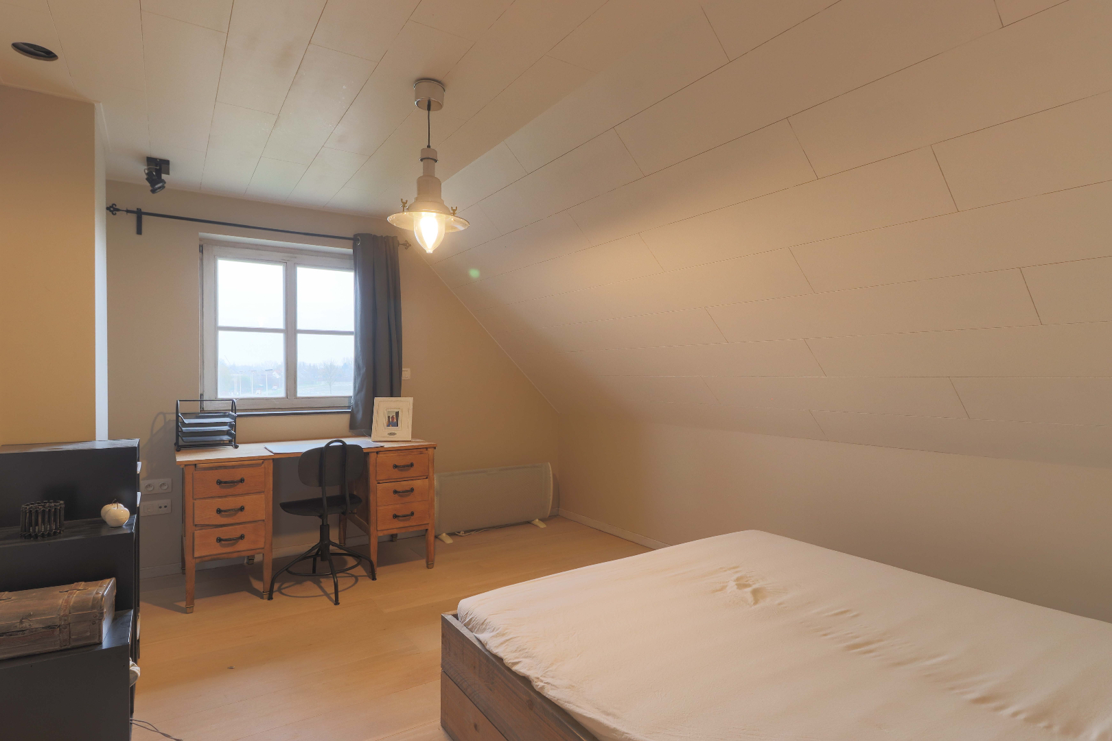Deze charmevilla op een bevoorrechte ligging doet u wegdromen, vanuit de leefruimte op het verdiep hebben we zicht op de open velden, een gezellige openhaard geeft de nodige warmte. Vanuit de leefruimte kunnen we op een ruim dakterras op het verdiep. Centraal gelegen vinden we een volledig ingerichte keuken met aansluitend de master bedroom.