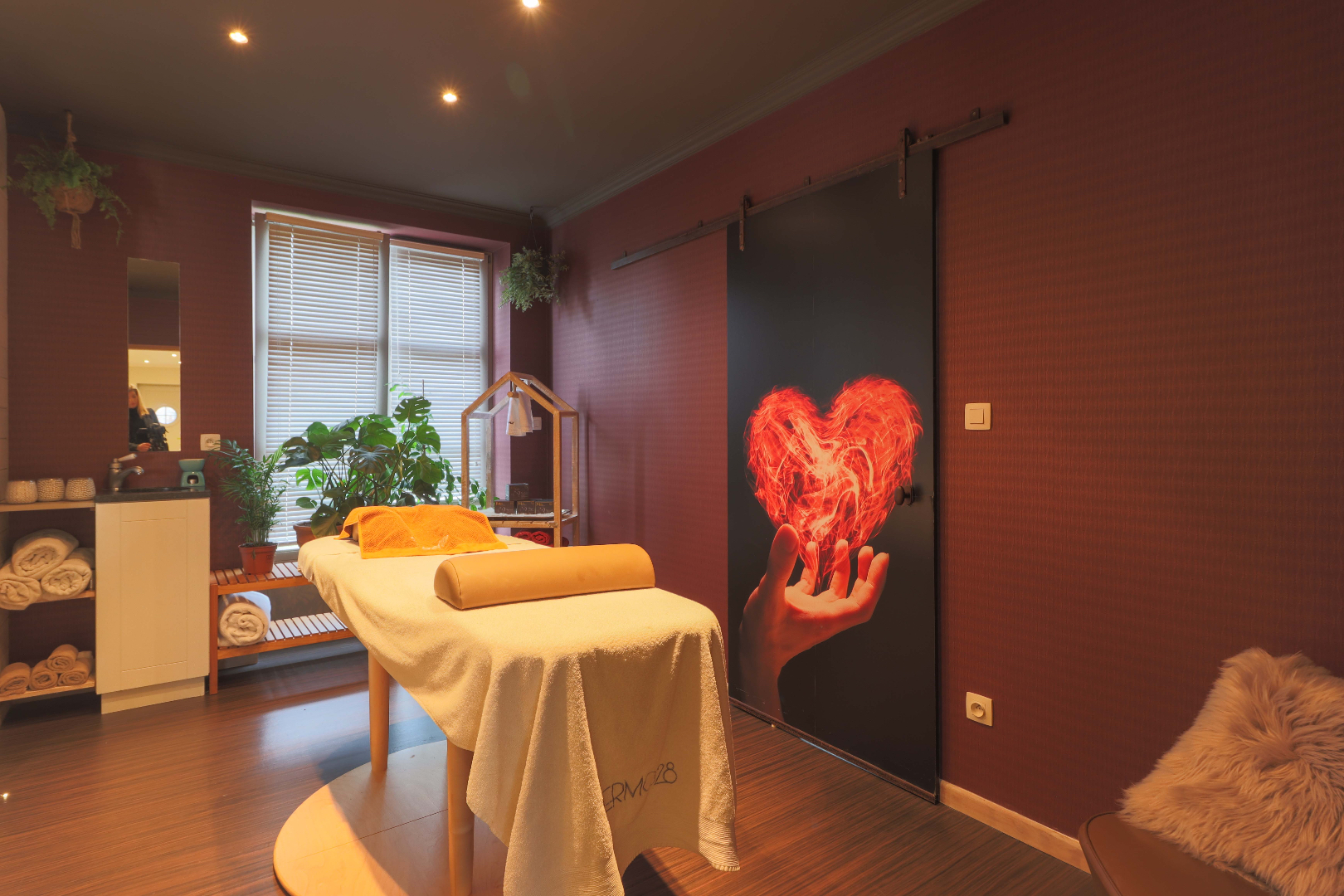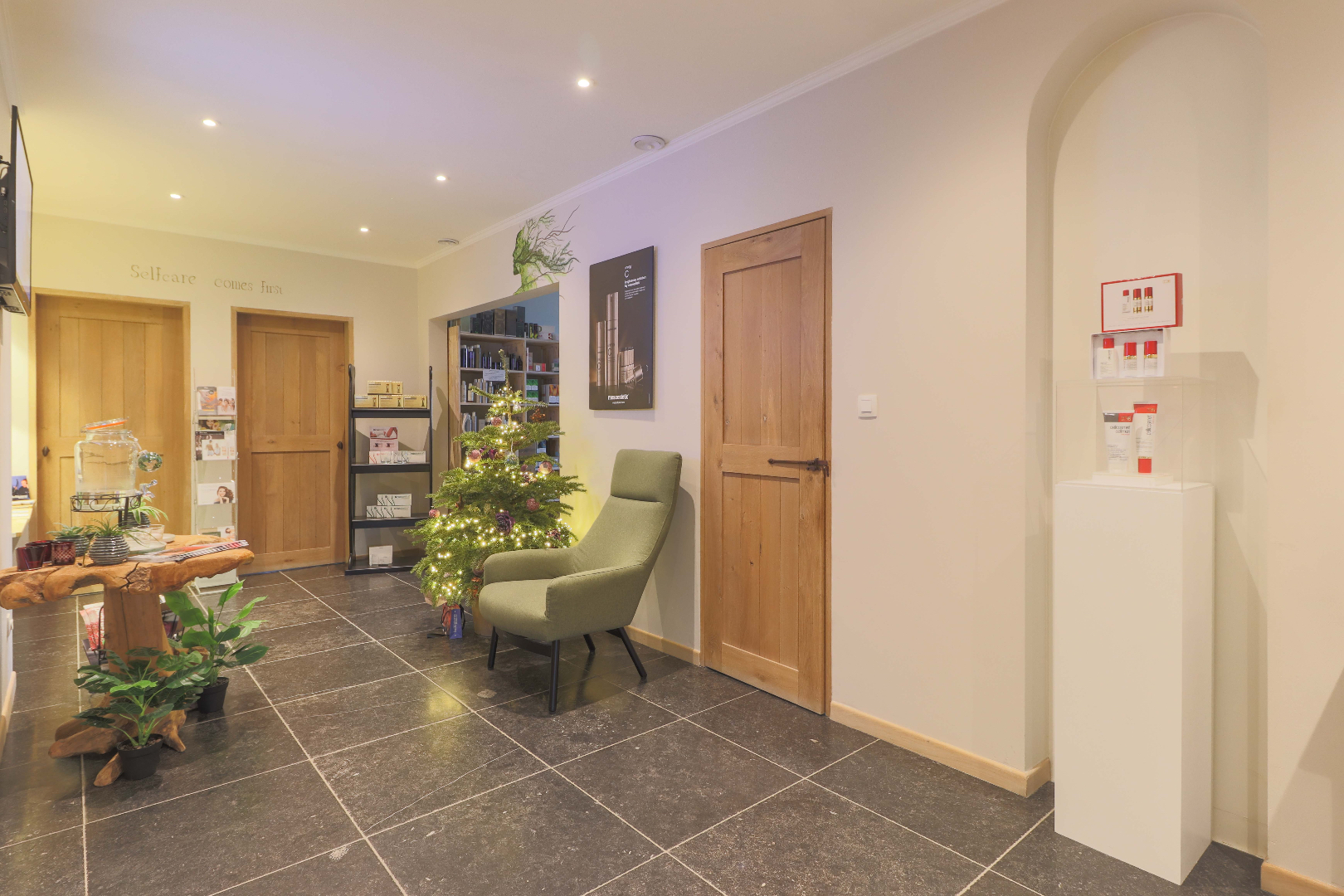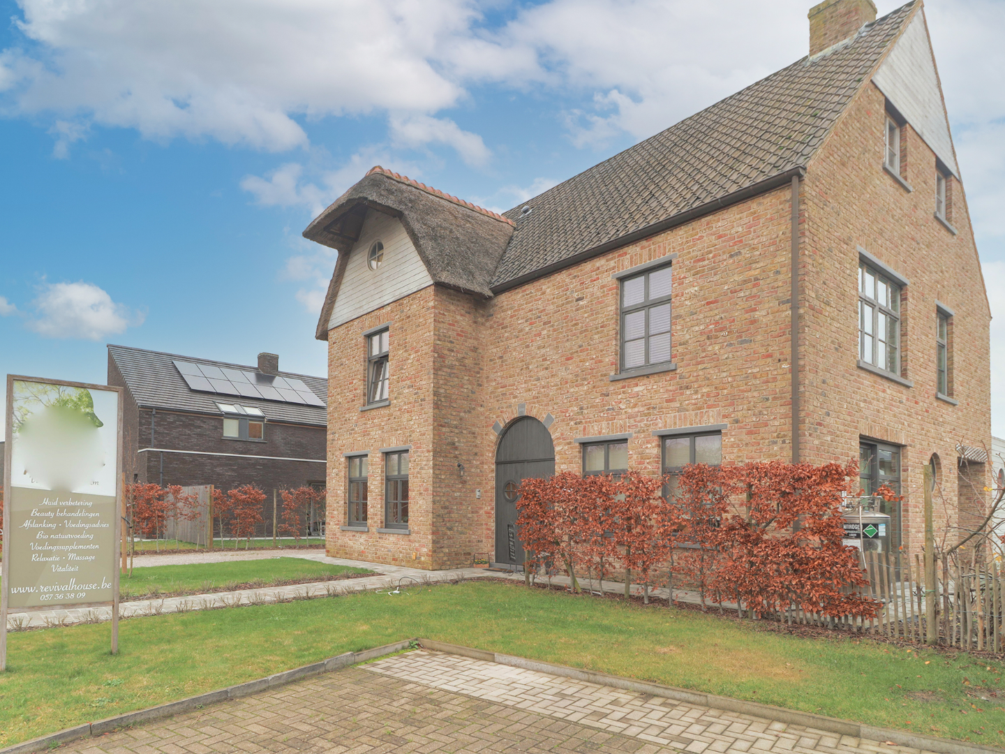 Het beneden verdiep is momenteel ingericht als schoonheidssalon, maar kan evengoed dienst doen voor ander praktijken of kantoren. Hier zijn er vier aparte kamers met nog een volledig ingerichte keuken, een verder af te werken luxe-douche.