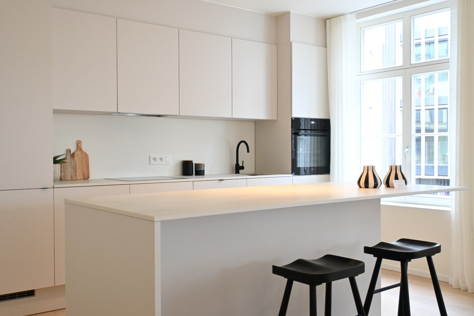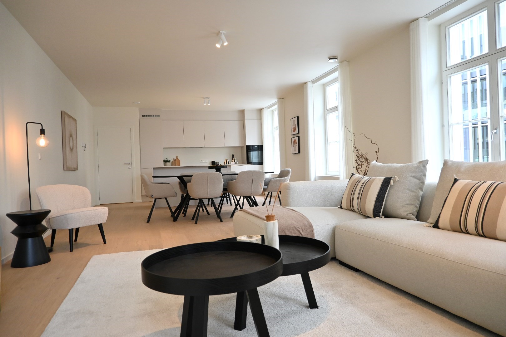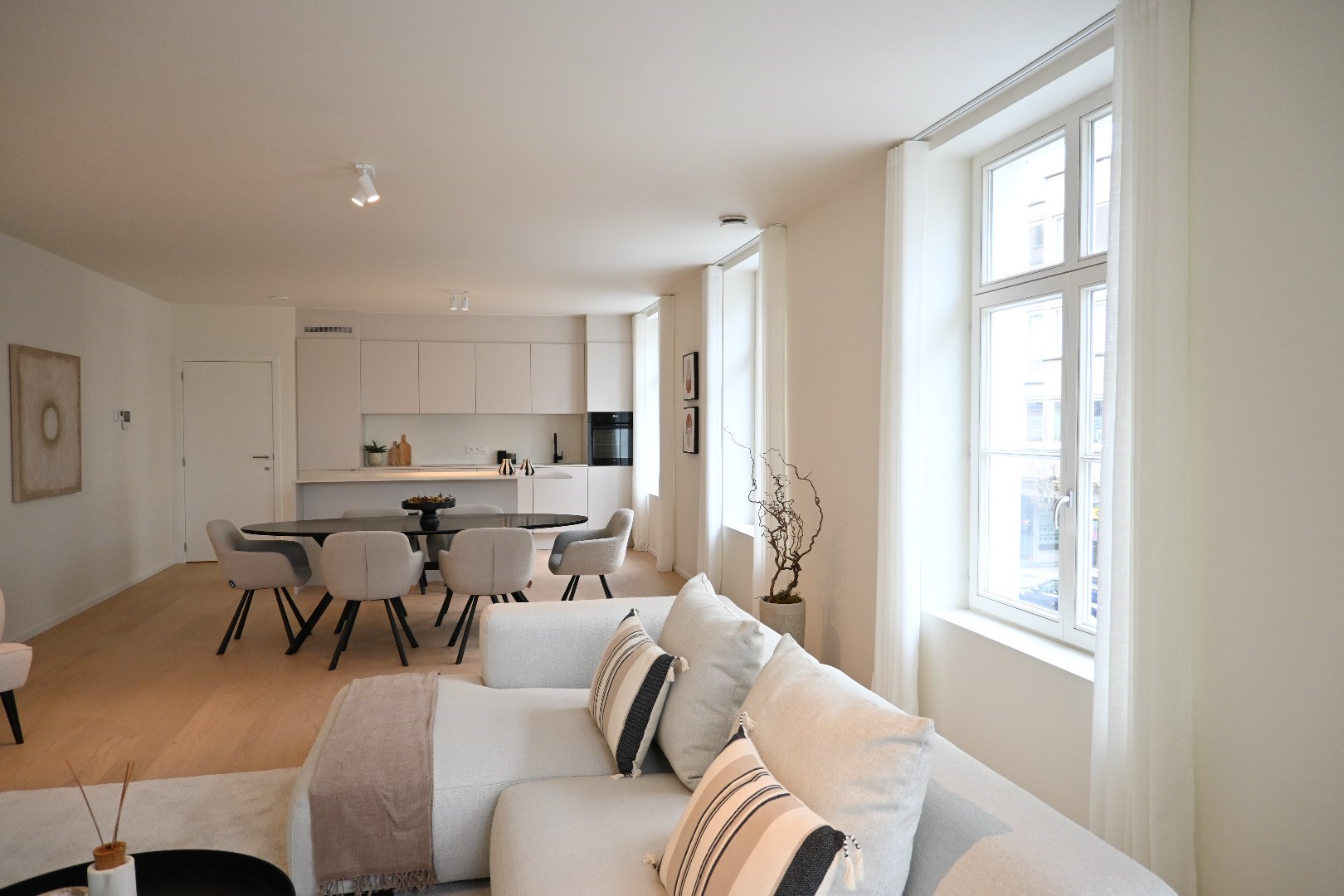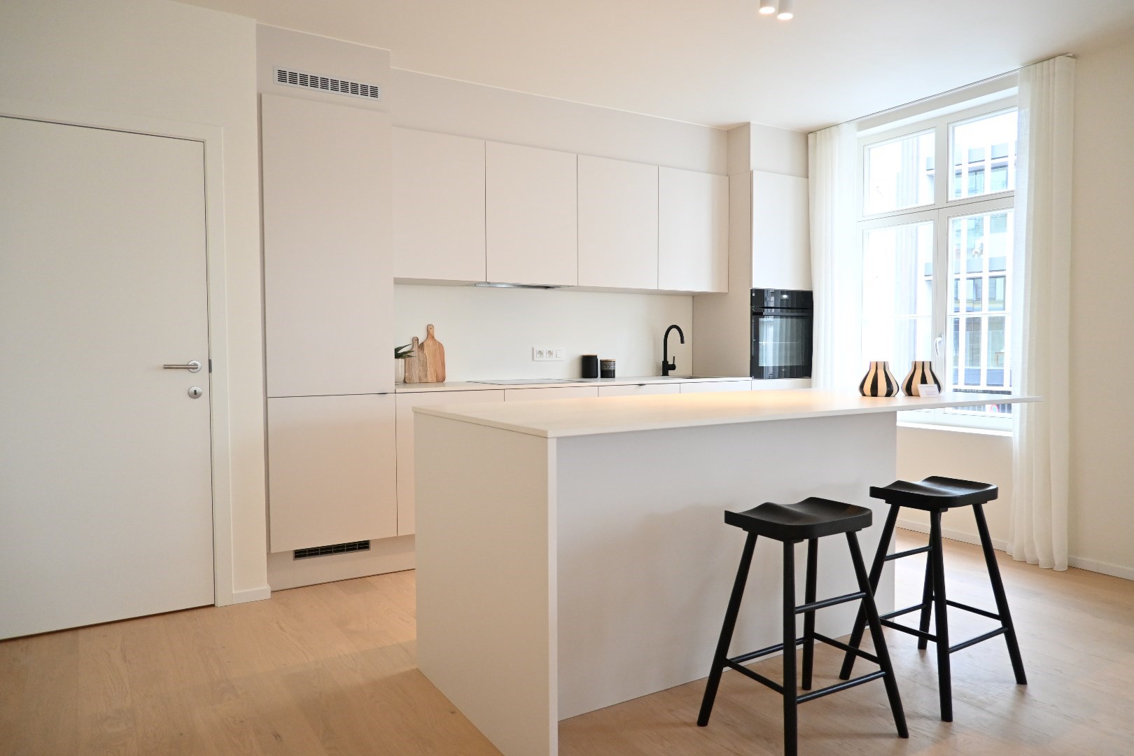 We situeren ons op de Graanmarkt, dit idyllische gebouw werd van top tot teen gestript en volledig herbouwd met enkel de gevel die is moeten blijven staan, we spreken aldus over een nieuwbouw voorzien van lift en ruime gemeenschappelijk berglokaal in de ingang.