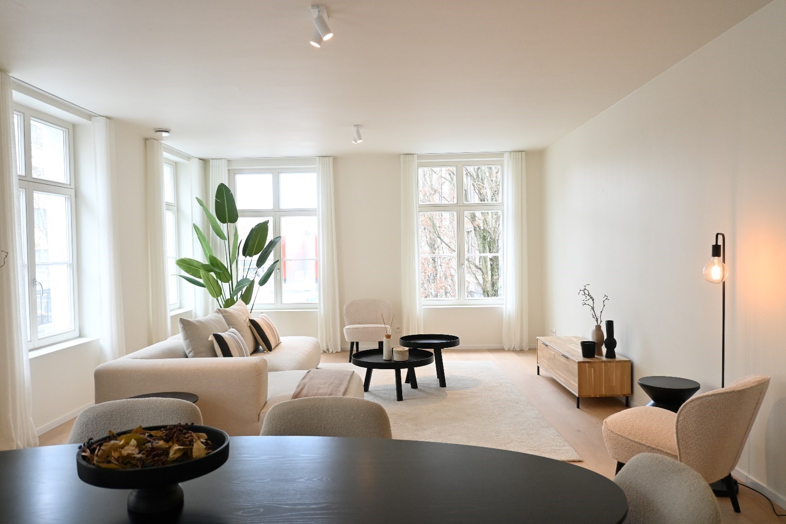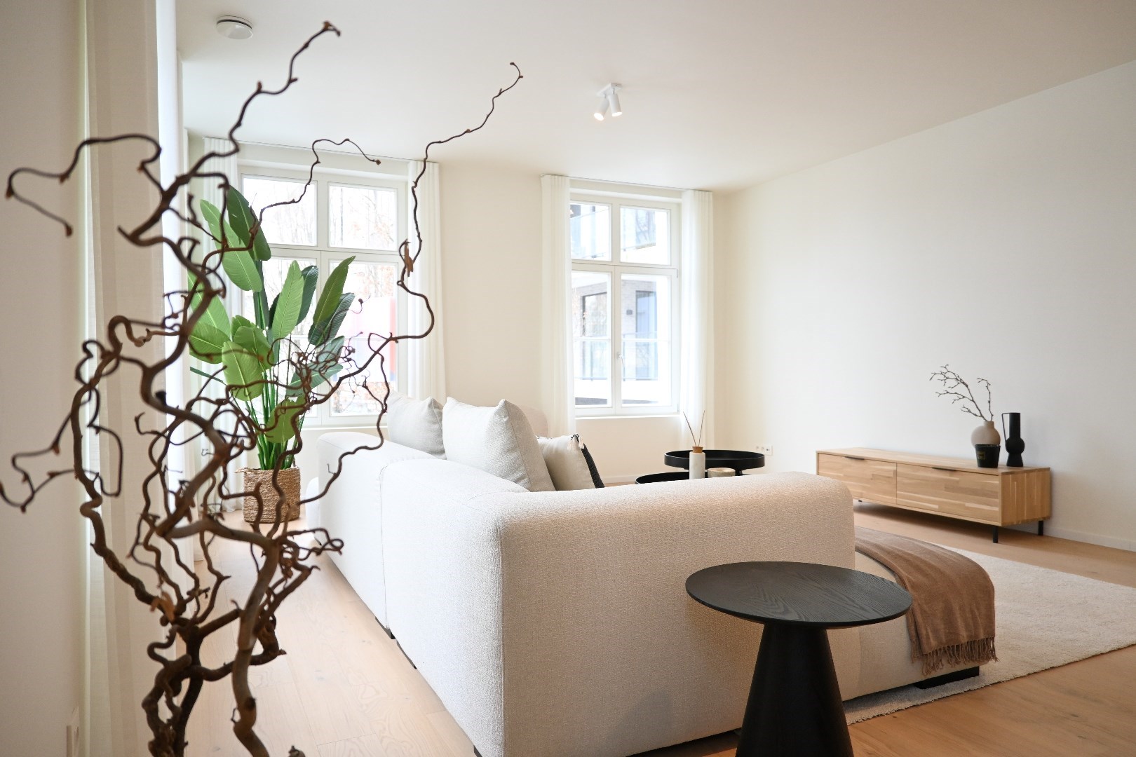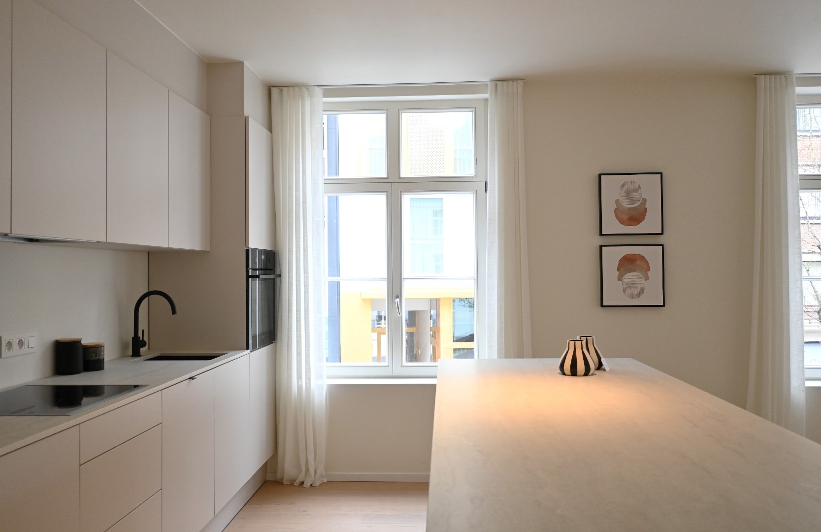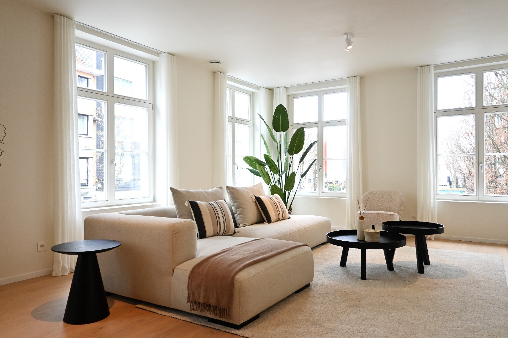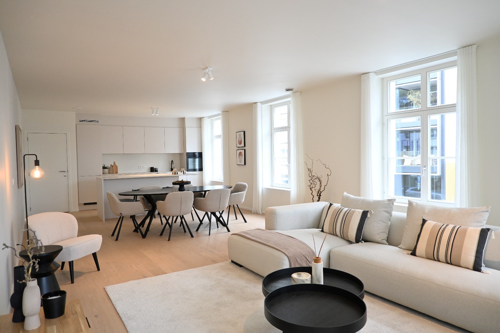 We situeren ons op de Graanmarkt, dit idyllische gebouw werd van top tot teen gestript en volledig herbouwd met enkel de gevel die is moeten blijven staan, we spreken aldus over een nieuwbouw voorzien van lift en ruime gemeenschappelijk berglokaal in de ingang.