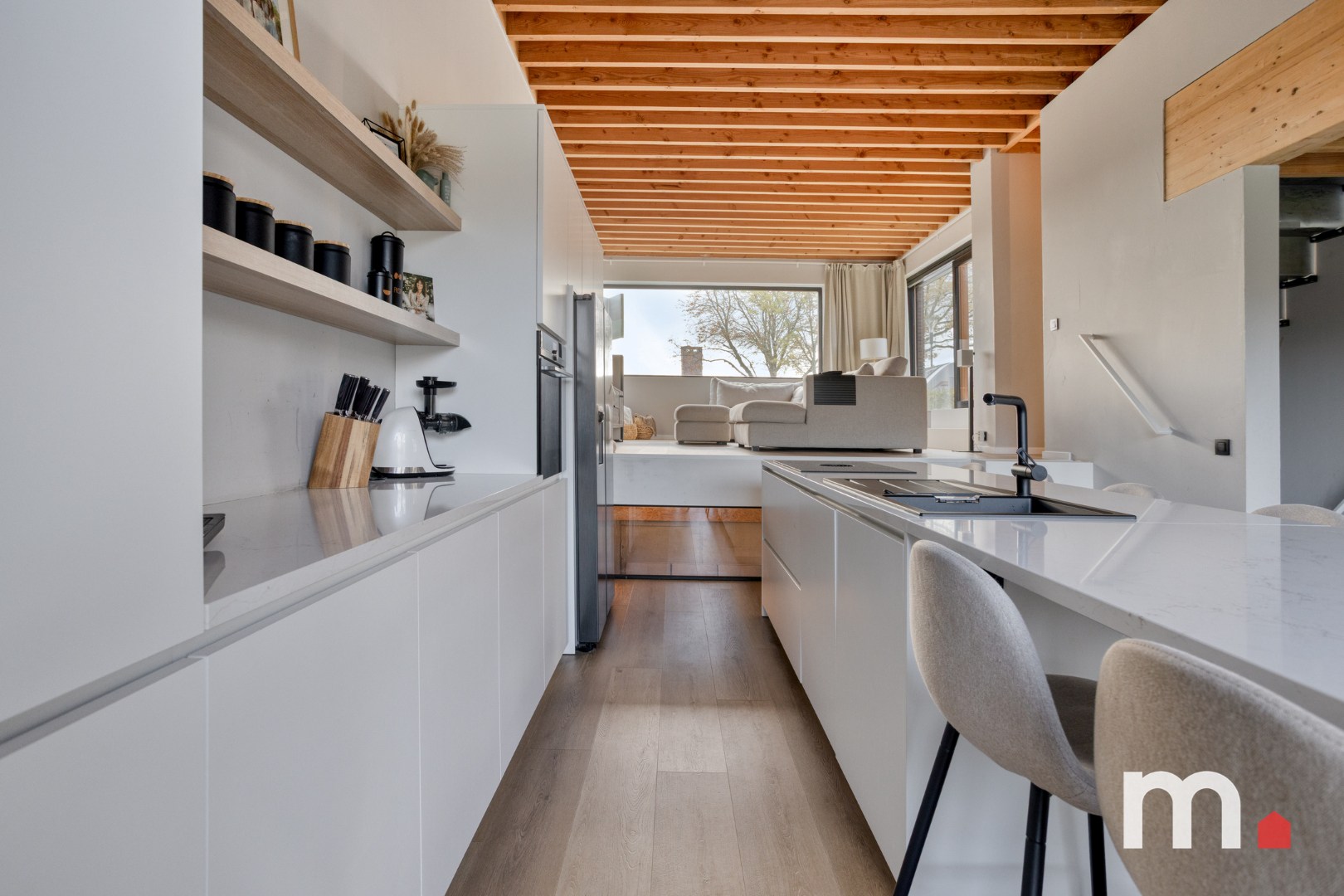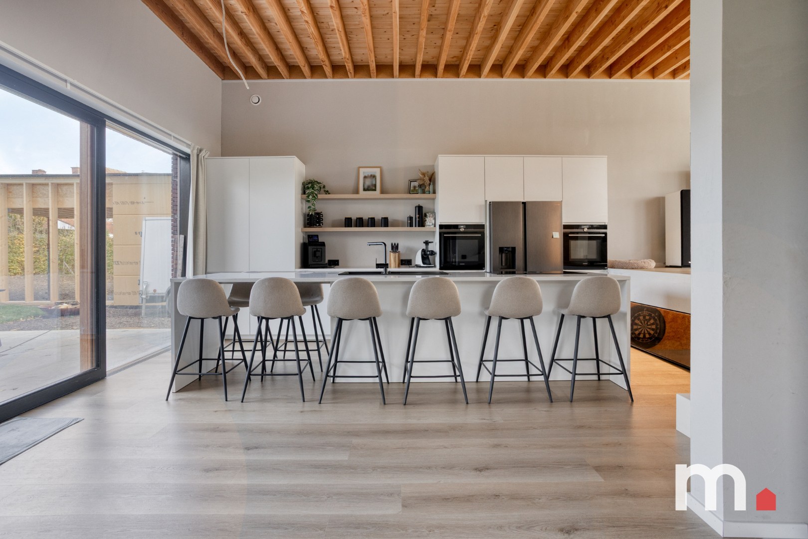 ✅ Volledig uitgeruste open keuken met keukeneiland: ventilatie Bora met filter, vaatwas, oven-steam, oven-microgolfoven, Amerikaanse frigo met diepvries, composiet werkblad, veel kastruimte en plaats voor 8 personen aan het keukeneiland