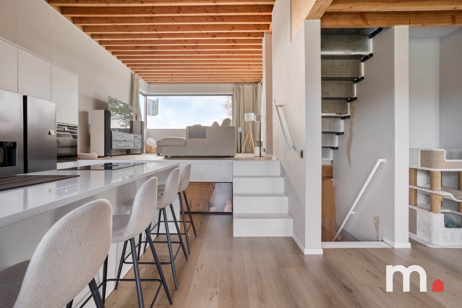✅ Lichtrijke leefruimte en eetplaats ideaal voor gezinnen met toegang tot het zwevend terras voorzien van verlichting en stopcontacten