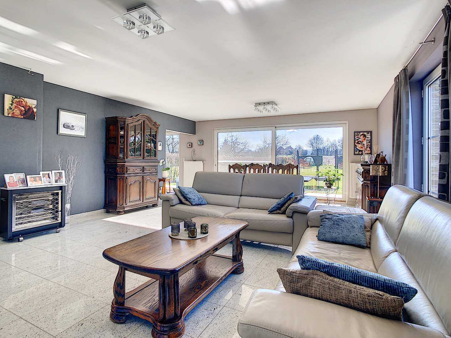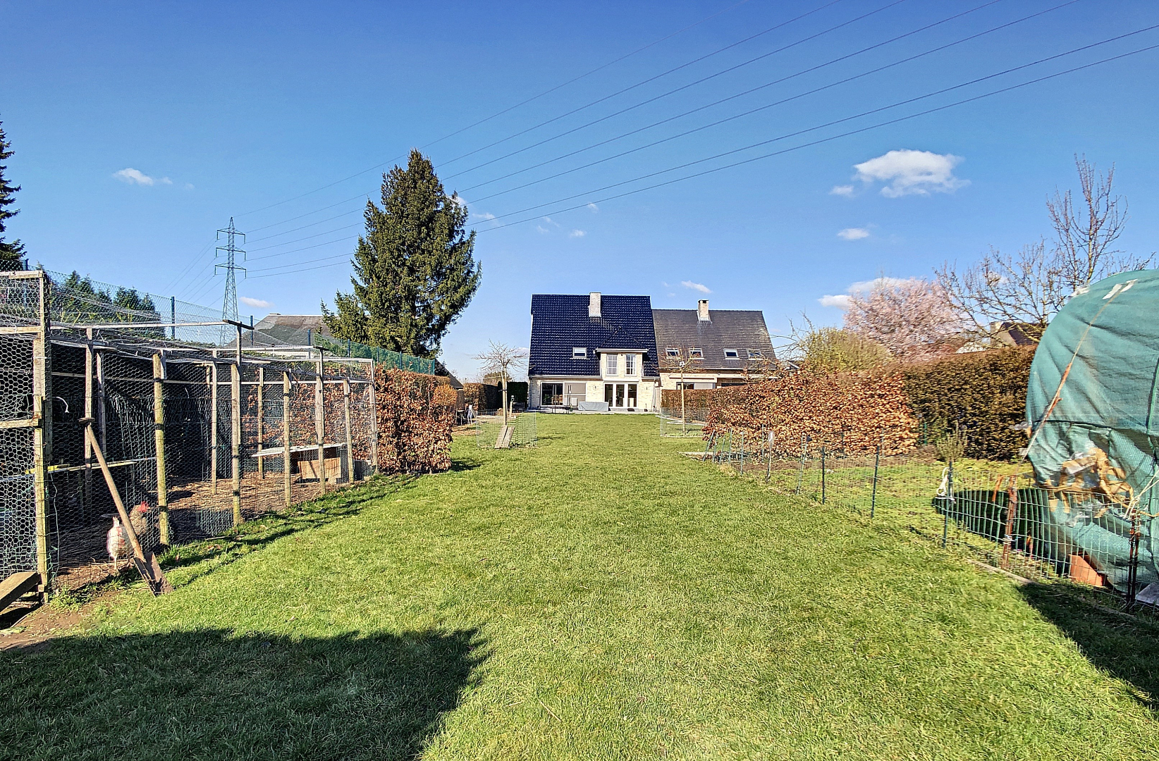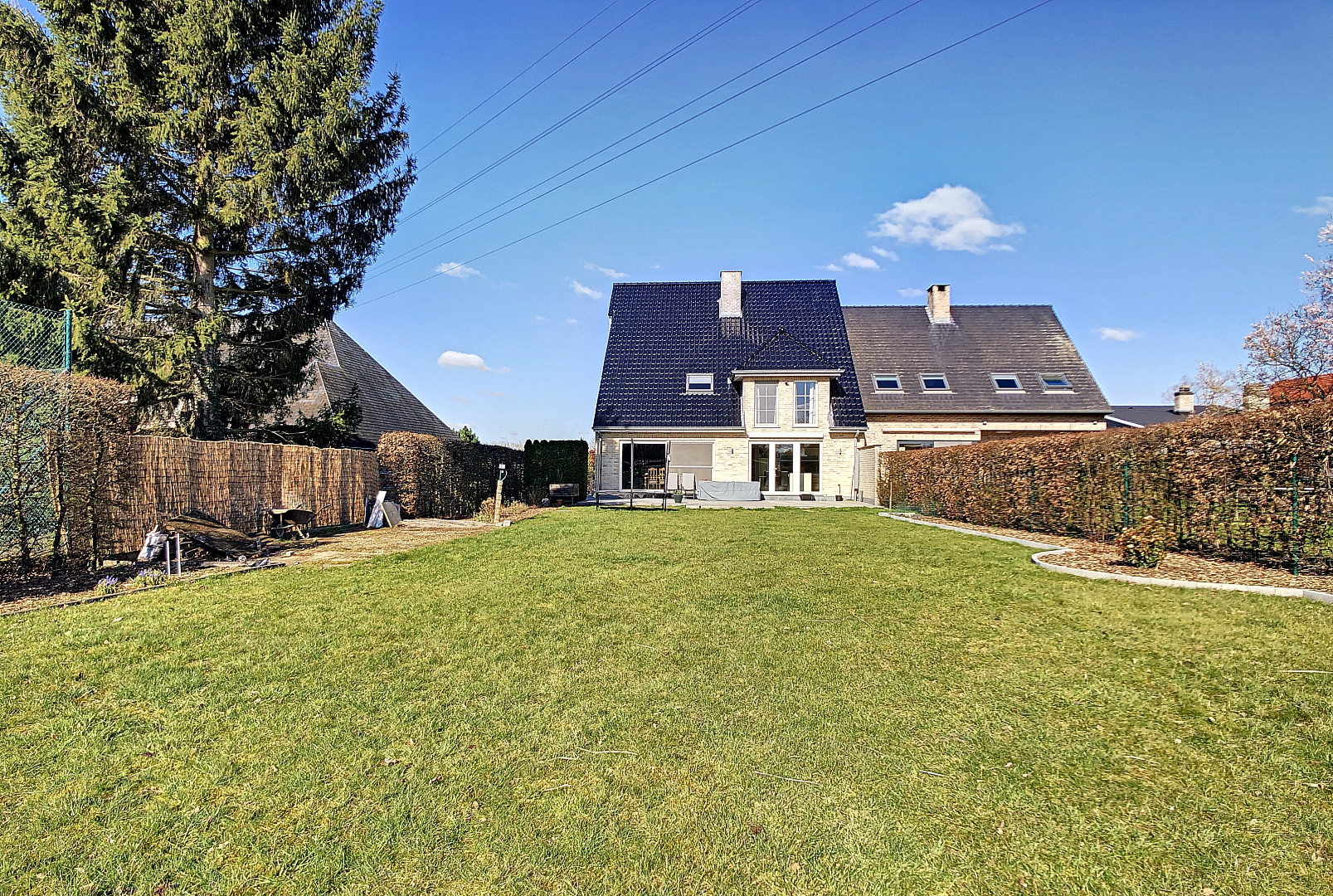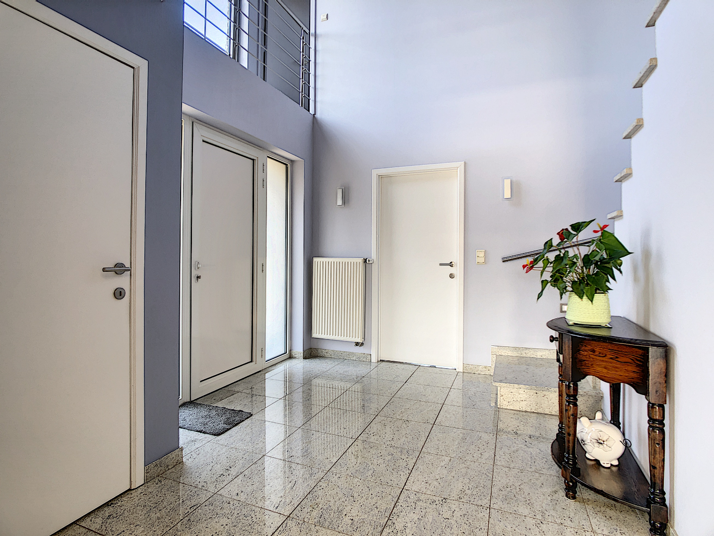 De riante inkomhal brengt ons naar de grote leefruimte de het zicht deelt ,samen met de volledig ingerichte keuken ,op de tuin de uitgeeft om een prachtig vergezicht met uitgang achteraan, genoeg plaats voor een bureelruimte, extra kamer en zo veel meer.