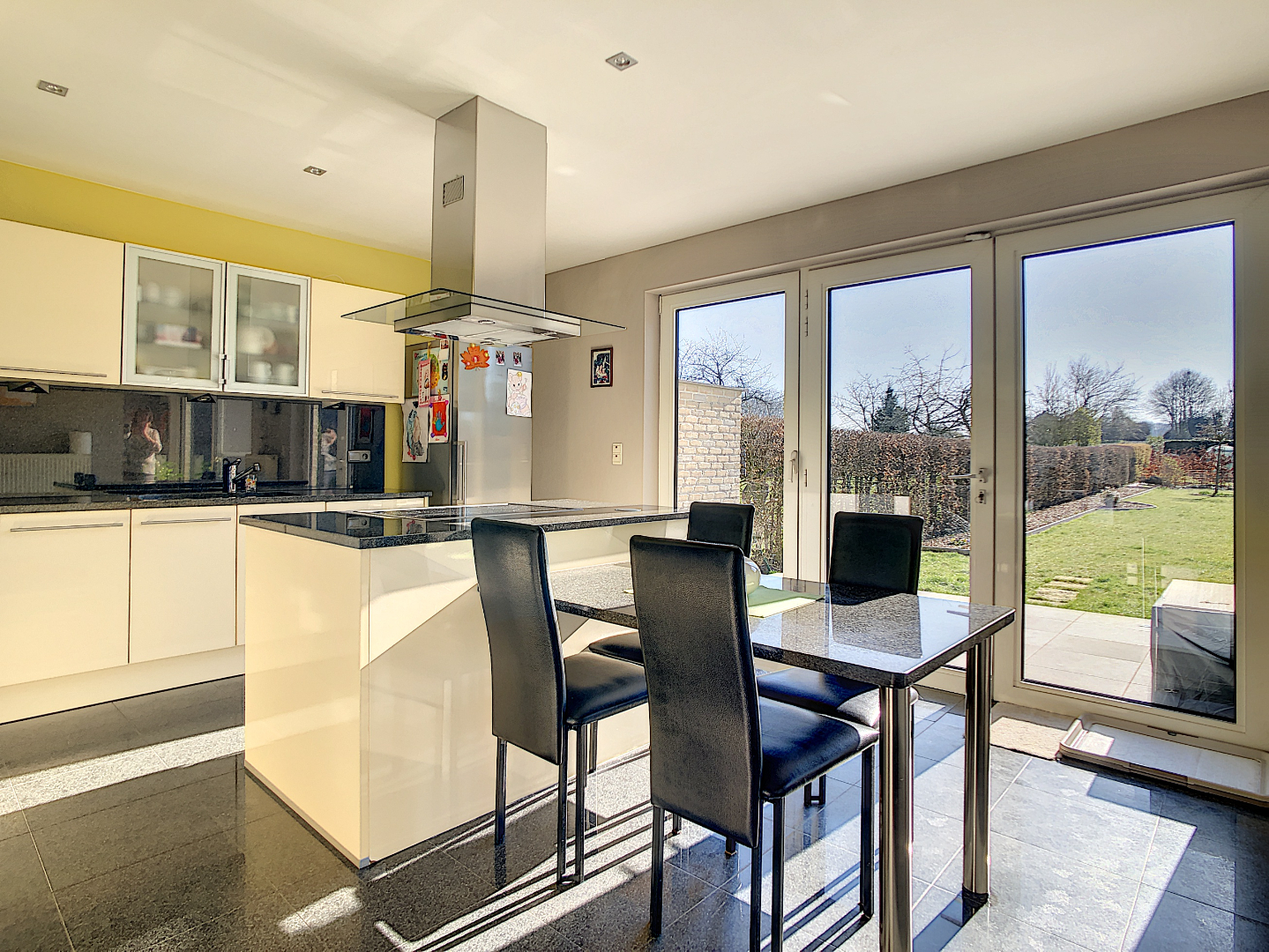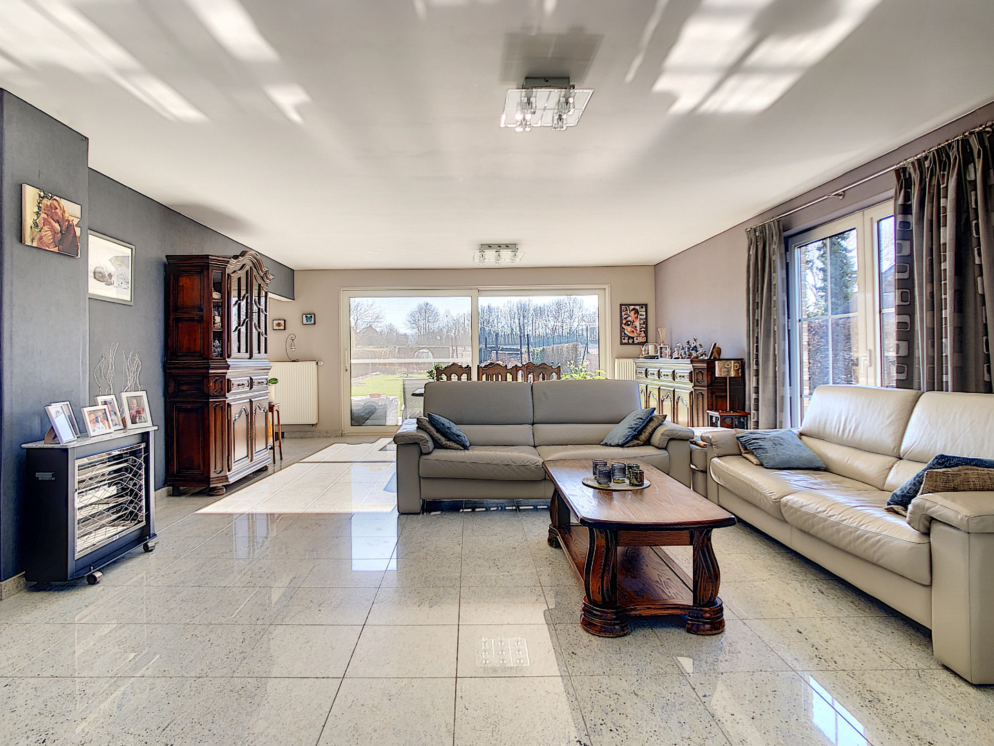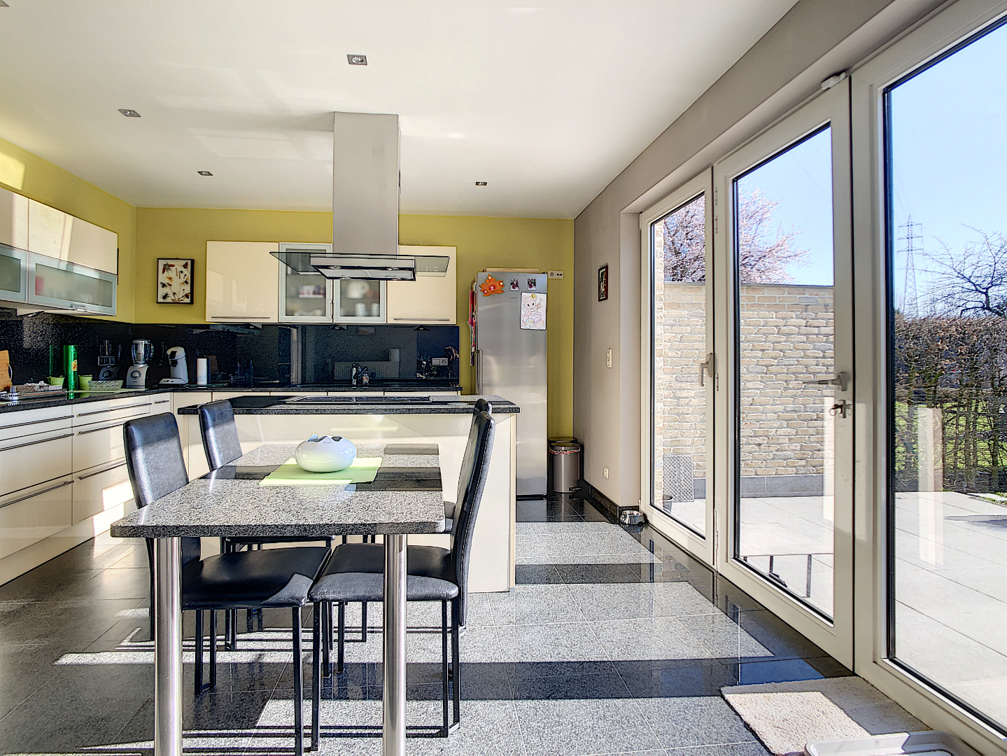 De riante inkomhal brengt ons naar de grote leefruimte de het zicht deelt ,samen met de volledig ingerichte keuken ,op de tuin de uitgeeft om een prachtig vergezicht met uitgang achteraan, genoeg plaats voor een bureelruimte, extra kamer en zo veel meer.