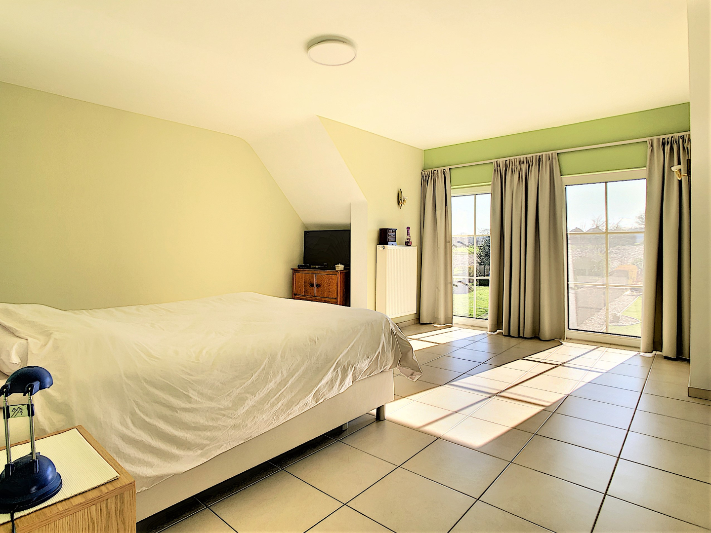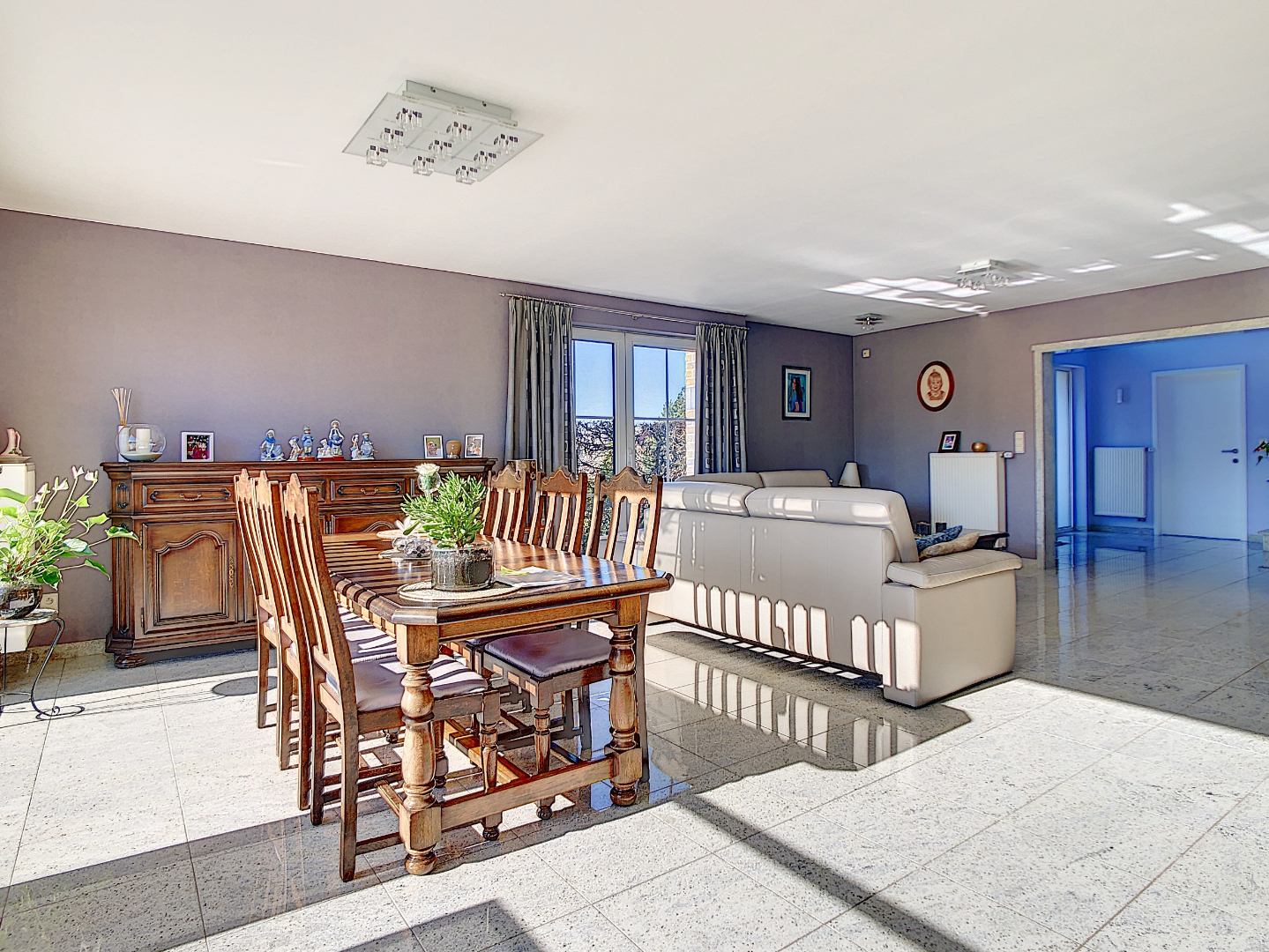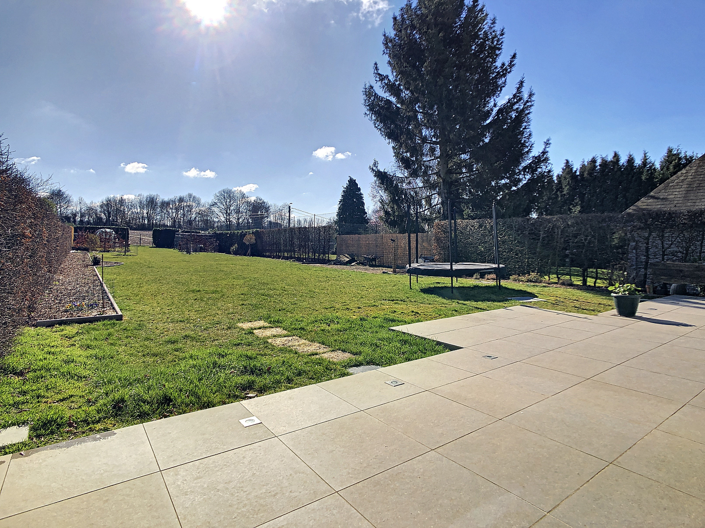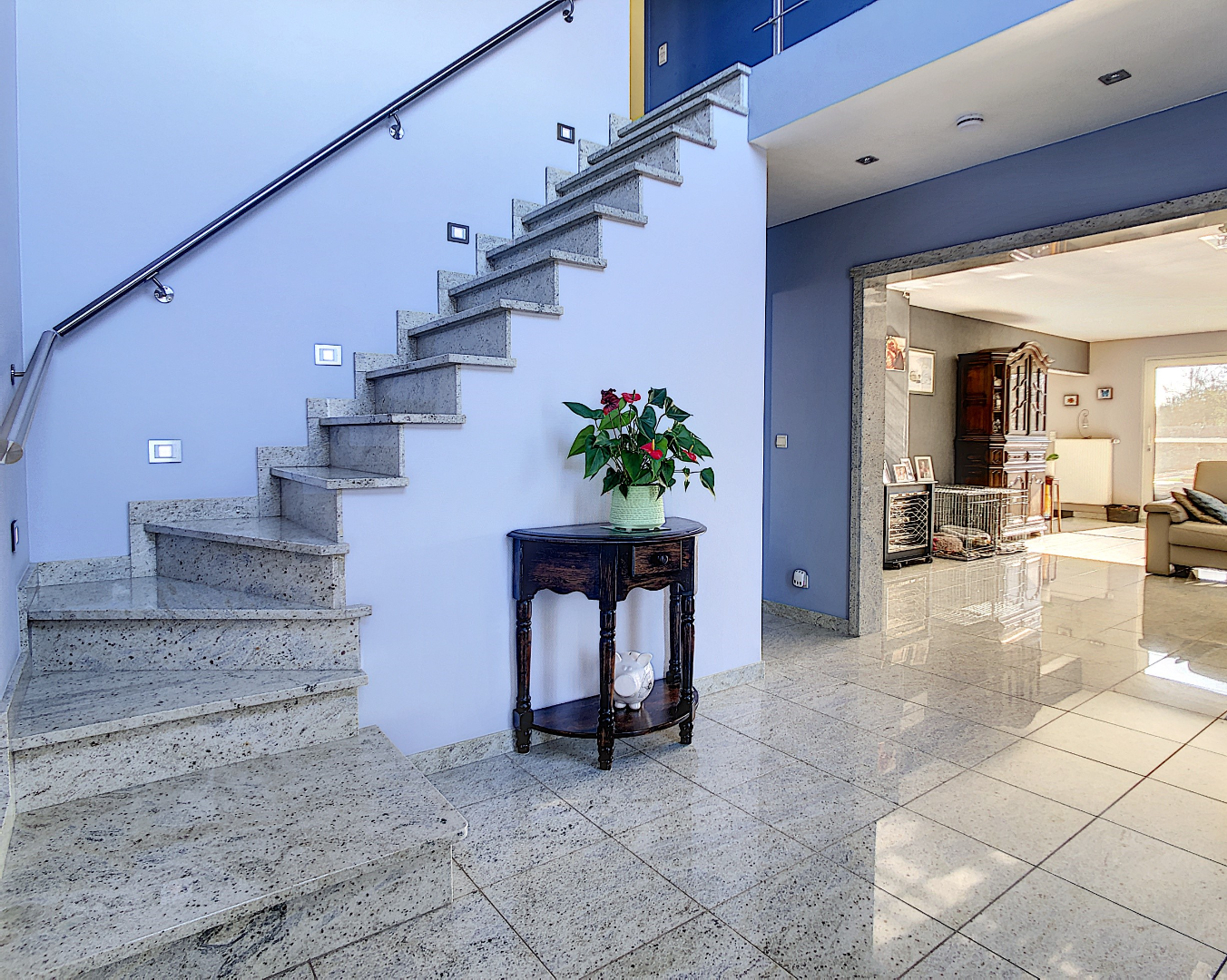 De riante inkomhal brengt ons naar de grote leefruimte de het zicht deelt ,samen met de volledig ingerichte keuken ,op de tuin de uitgeeft om een prachtig vergezicht met uitgang achteraan, genoeg plaats voor een bureelruimte, extra kamer en zo veel meer.