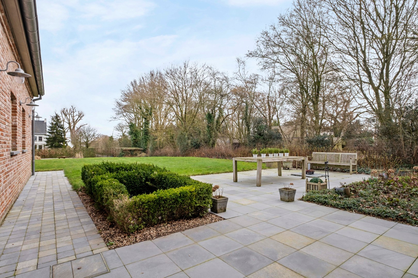 De uitgestrekte tuin kan/mag nog voorzien worden van een open zwembad.
