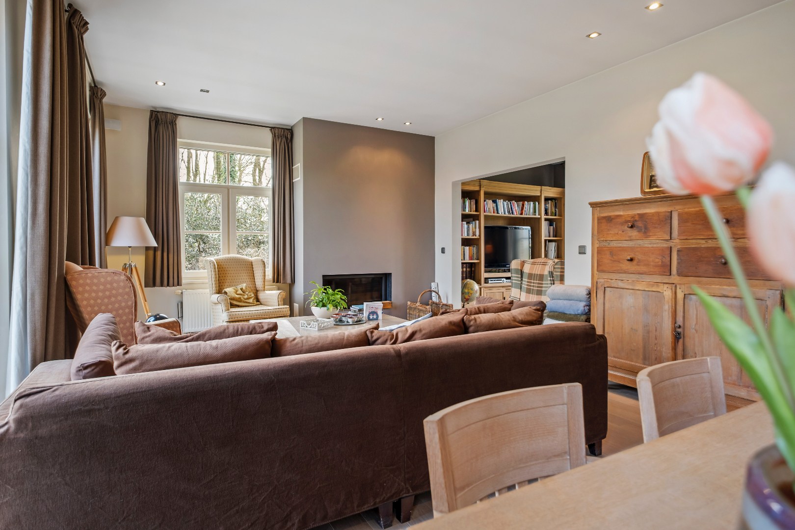 We beschikken over een moderne keuken met aansluitend een lichtrijke leefruimte en aparte tv hoek. Tevens gezellige open haard aanwezig.