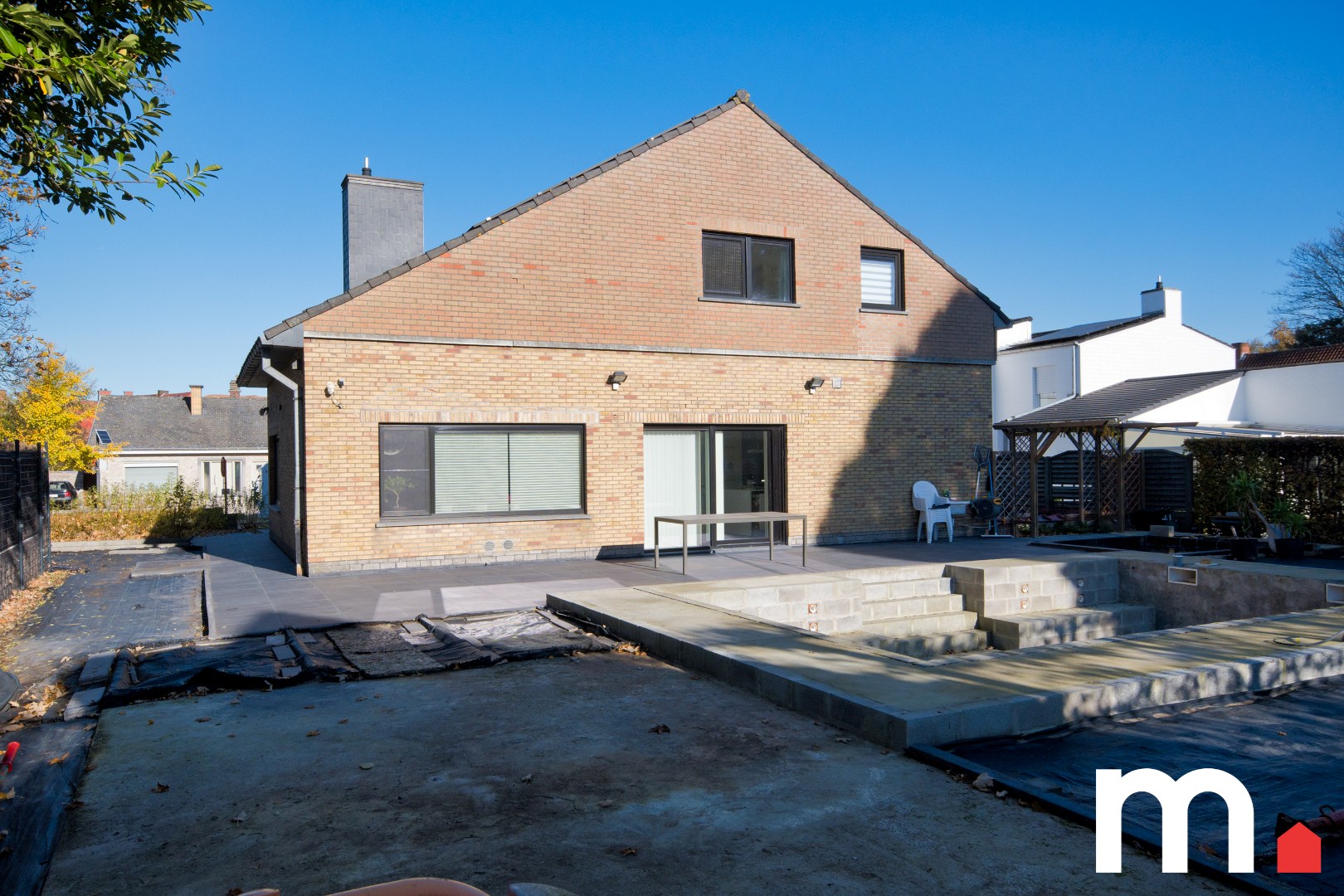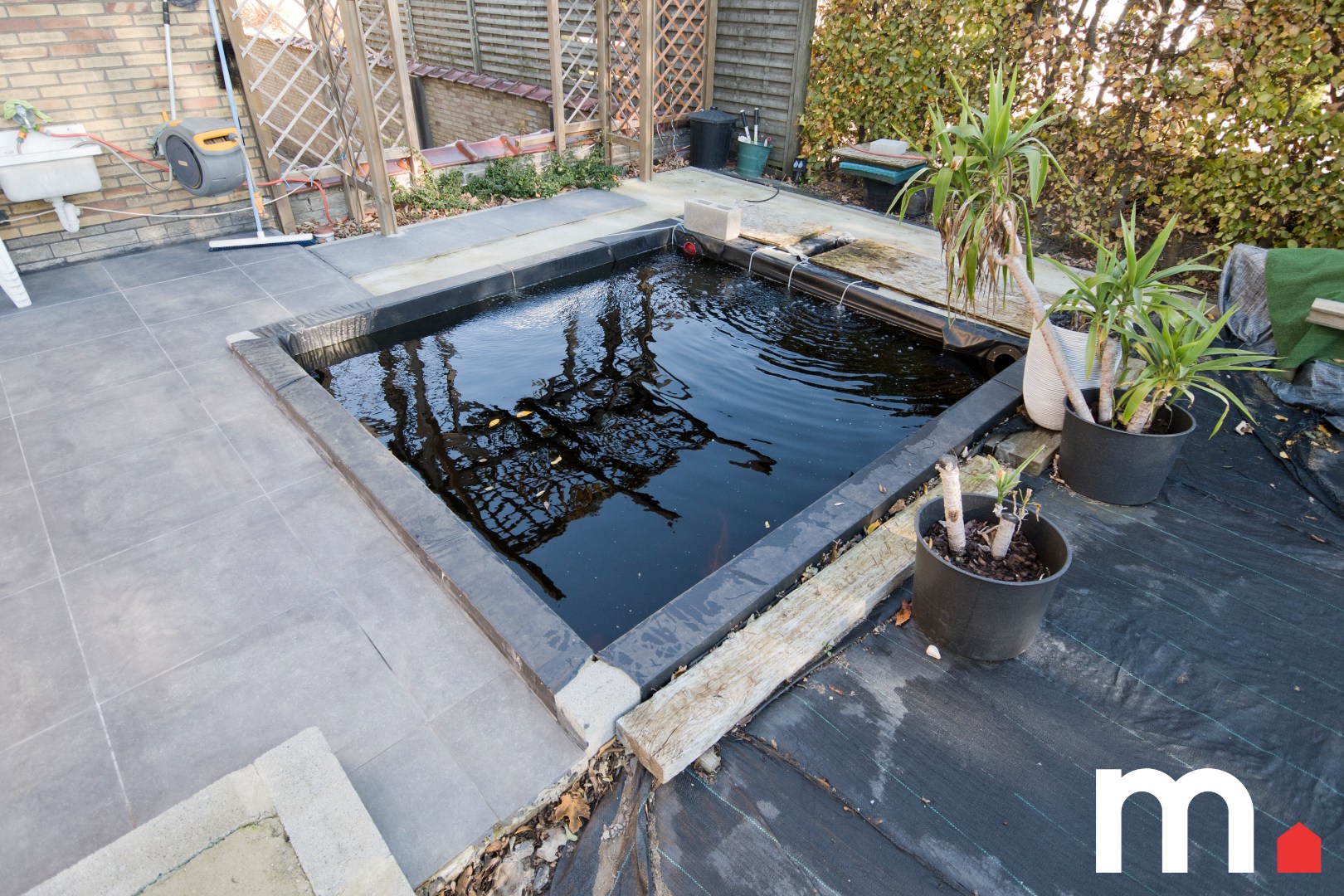 ✅ Tuin met aangelegd terras en mogelijkheid tot inbouwzwembad, kuip reeds voorzien met volledige voorebereiding mits plaatsen van liner kan u genieten van een inbouwzwembad