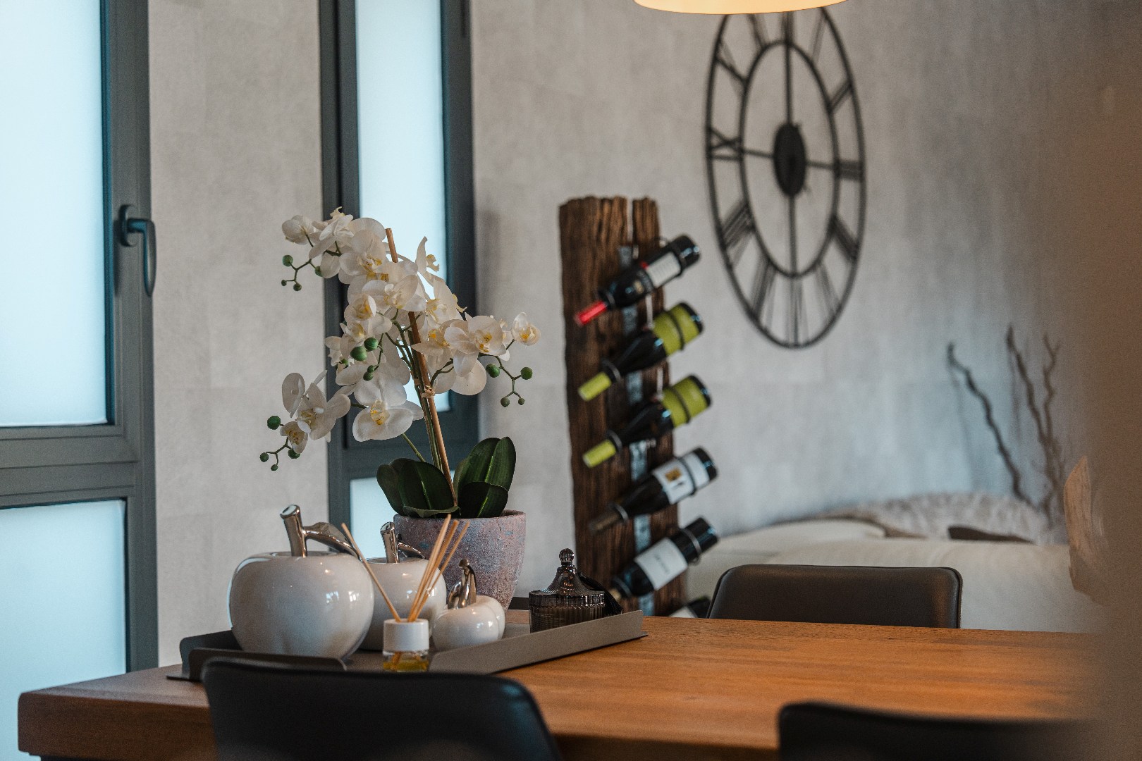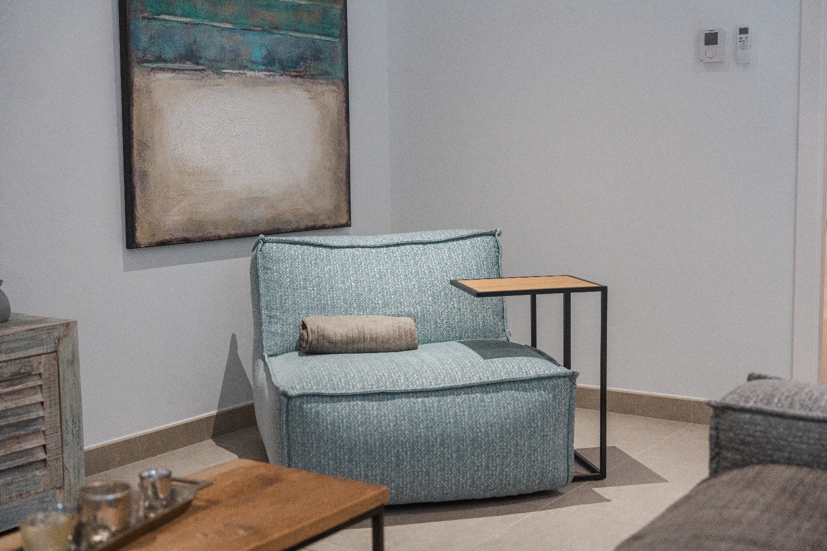 Onder de woning bevindt zich een volledig ingericht gastenappartement met twee slaapkamers, ideaal voor het ontvangen van vrienden of familie, of als zelfstandige leefruimte. Daarnaast is er op dit niveau een grote multifunctionele recreatieruimte, die momenteel deels wordt gebruikt als opslagruimte en fitnesszone. Deze ruimte biedt tal van mogelijkheden en kan eenvoudig worden ingericht als hobbyruimte, home cinema of extra ontspanningsruimte, volledig naar eigen wens.