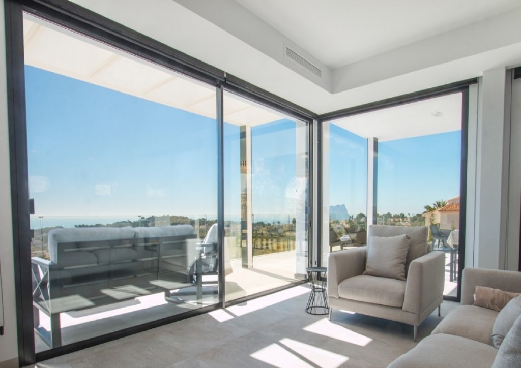 Op het gelijkvloers bevindt zich het leefgedeelte van meer dan 100m2 met woonkamer, open keuken, ruime inkom en gastentoilet. Van hieruit heb je een fantastisch panoramisch uitzicht op de zee, de rots van Calpe en El Portet.