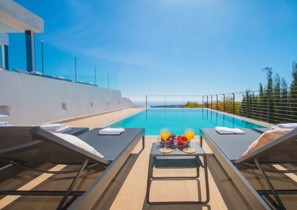 Beneden zijn er vijf slaapkamers en vijf badkamers, vier van deze slaapkamers genieten van een ensuite badkamer en hebben panoramisch zeezicht. Daarbij bevindt zich ook een volledig uitgerust wasplaats.