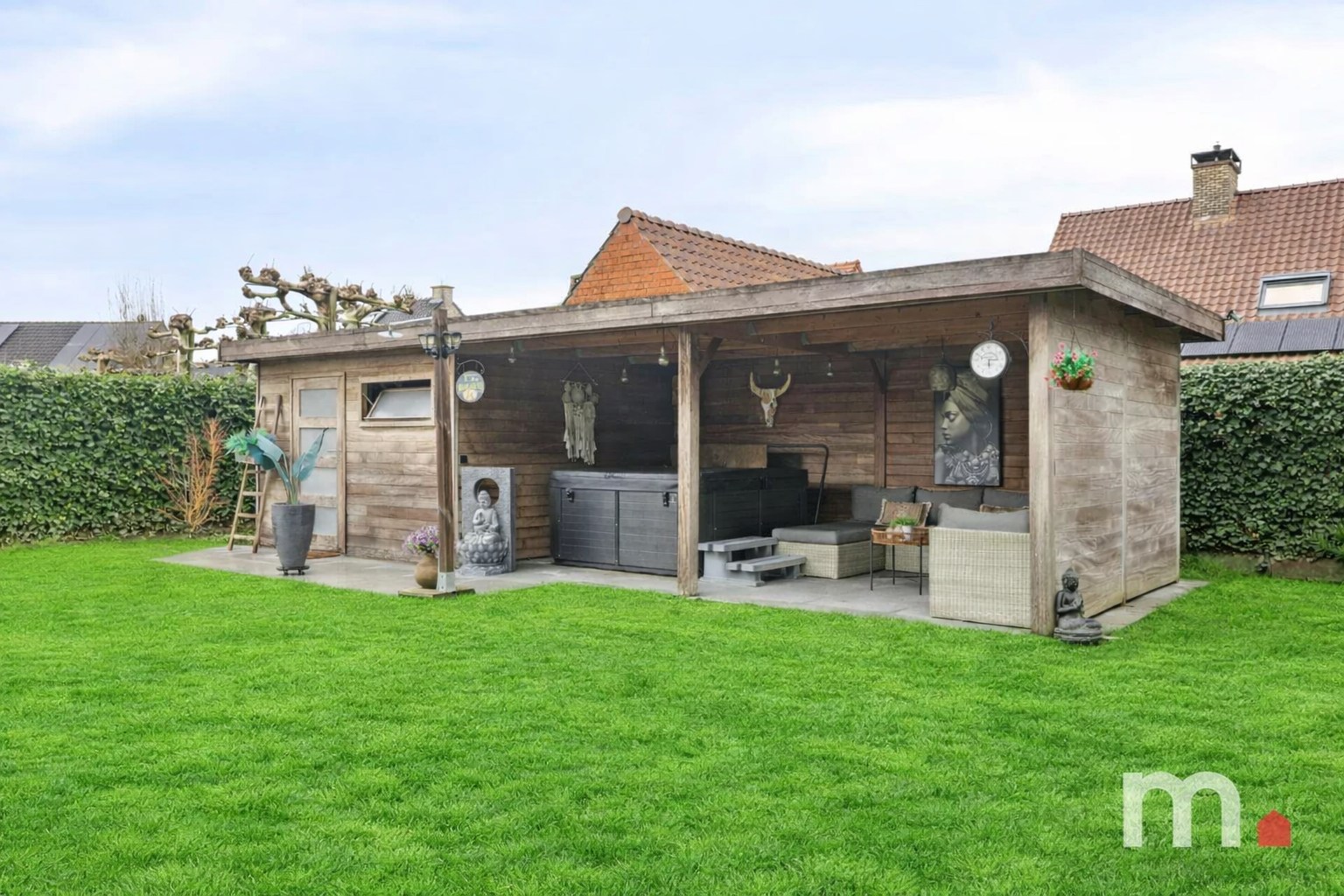 ✅ Aangelegde tuin met: 2 terrassen, 1 tuinberging/hobbyruimte en Overdekt terras met jacuzzi