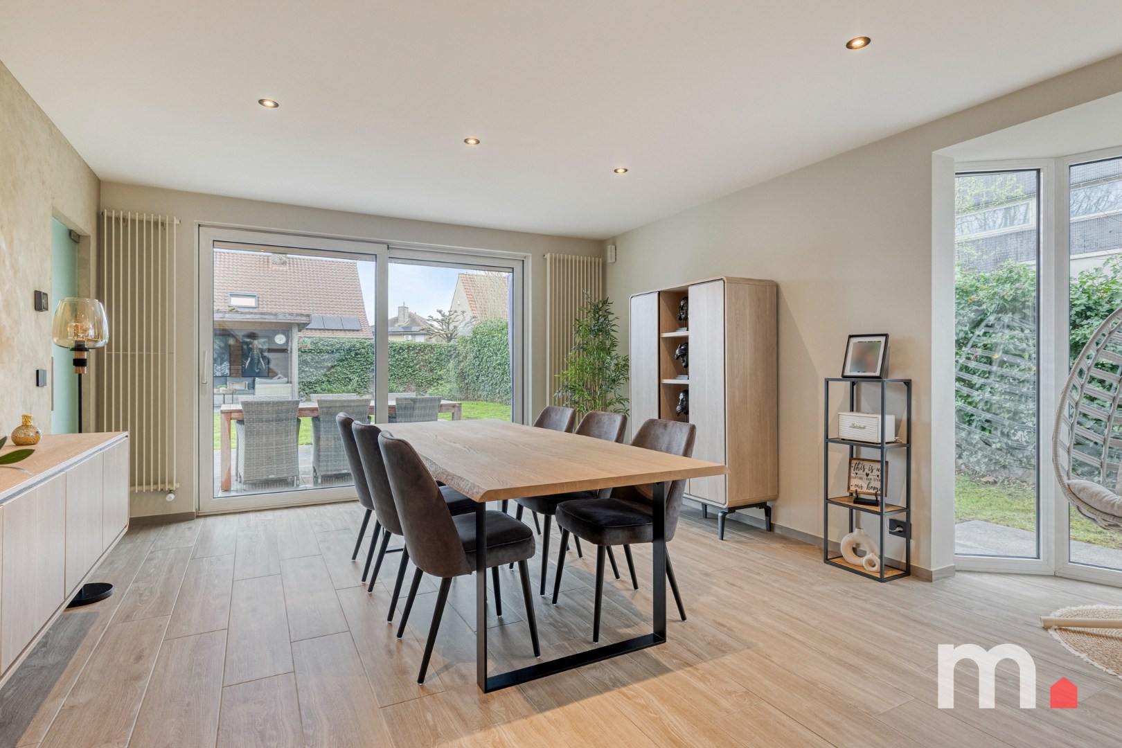 ✅ Lichtrijke leefruimte met ingebouwde gaskachel ideaal voor gezinnen en ruime eetplaats met zicht op de tuin